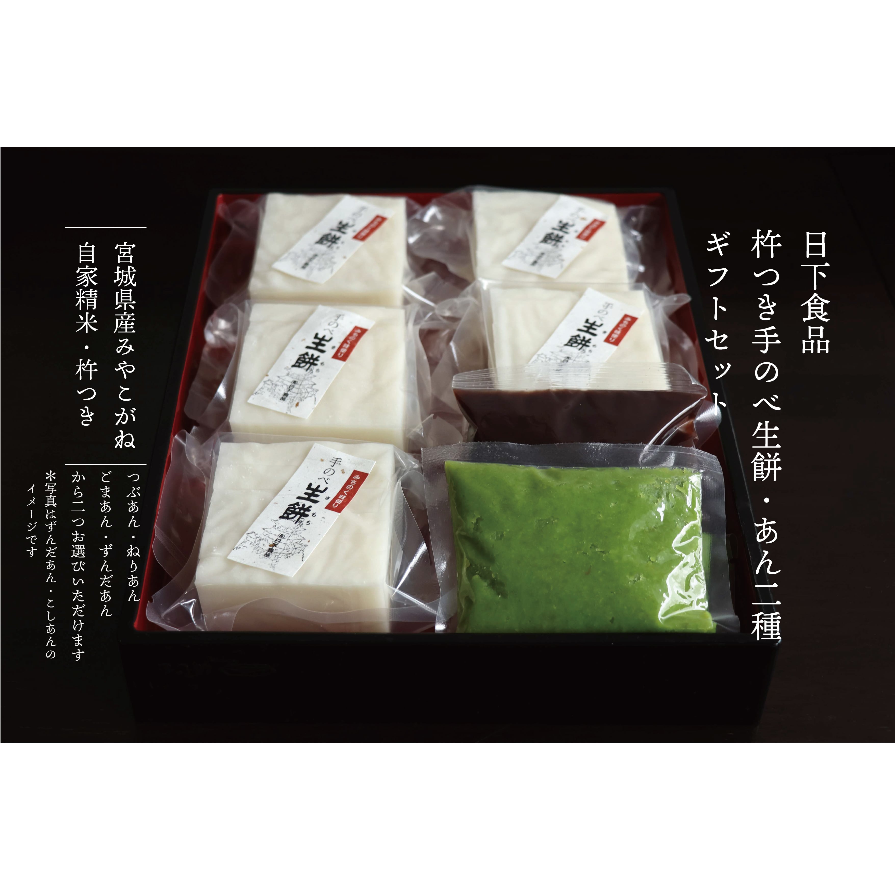 昭和25年創業のまちの餅屋から、長年多くの皆さまにご愛顧いただいている自慢の「杵つき手のべ生餅」と特製あん2種類のセット(小倉あん・ねりあん・ごまあん・ずんだあんの4種類から2種類をお選びいただけます)をお届けします。